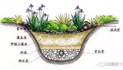 雨水花園是自然形成的或人工挖掘的淺凹綠地,被用于匯聚并吸收來(lái)自屋頂或地面的雨水,通過(guò)植物、沙土的綜合作用使雨水得到凈化,并使之逐漸滲入土壤,涵養(yǎng)地下水。