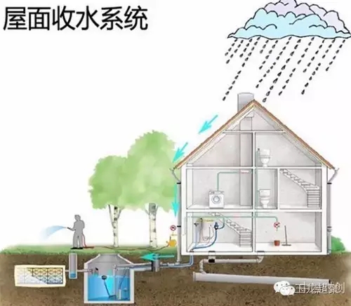 對(duì)于不適用綠色屋頂?shù)奈菝?,也可以通過(guò)排水溝、雨水鏈等方式收集引導(dǎo)雨水進(jìn)行貯蓄或下滲。下圖為屋面收水的結(jié)構(gòu)示意圖。