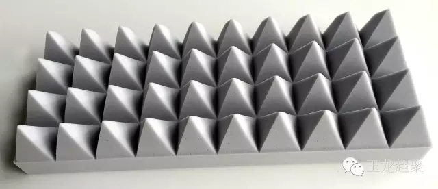 蜜胺泡綿是一個(gè)充分的開孔的三維網(wǎng)格結(jié)構(gòu)體系,其網(wǎng)格的長(zhǎng)徑比即L/D約在10到20之間,其極高的開孔率特征(密度為4-20kg/m⊃;的蜜胺泡綿的開孔率高達(dá)99%以上)使得聲波能方便有效地進(jìn)入泡沫體的深層并轉(zhuǎn)變?yōu)榫W(wǎng)格的震動(dòng)能被消耗和吸收掉,且有效地消除反射波。